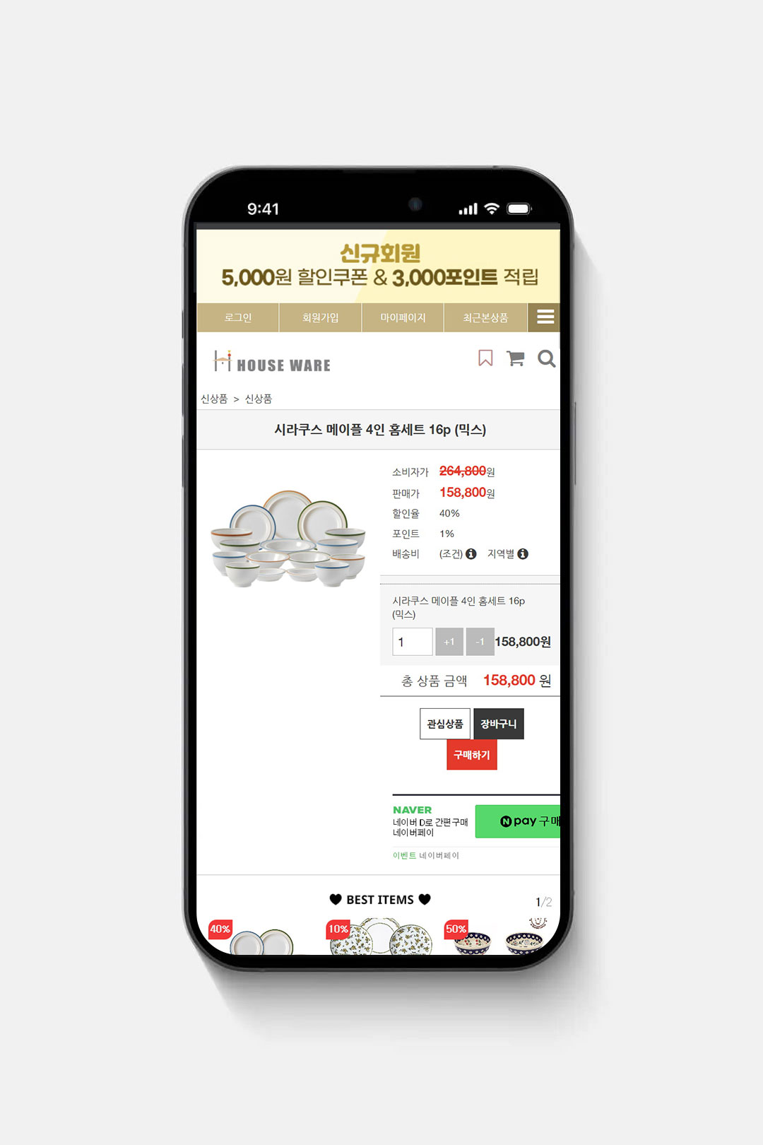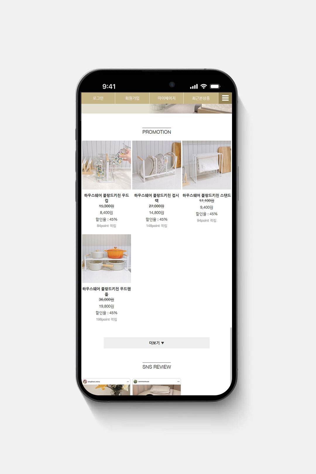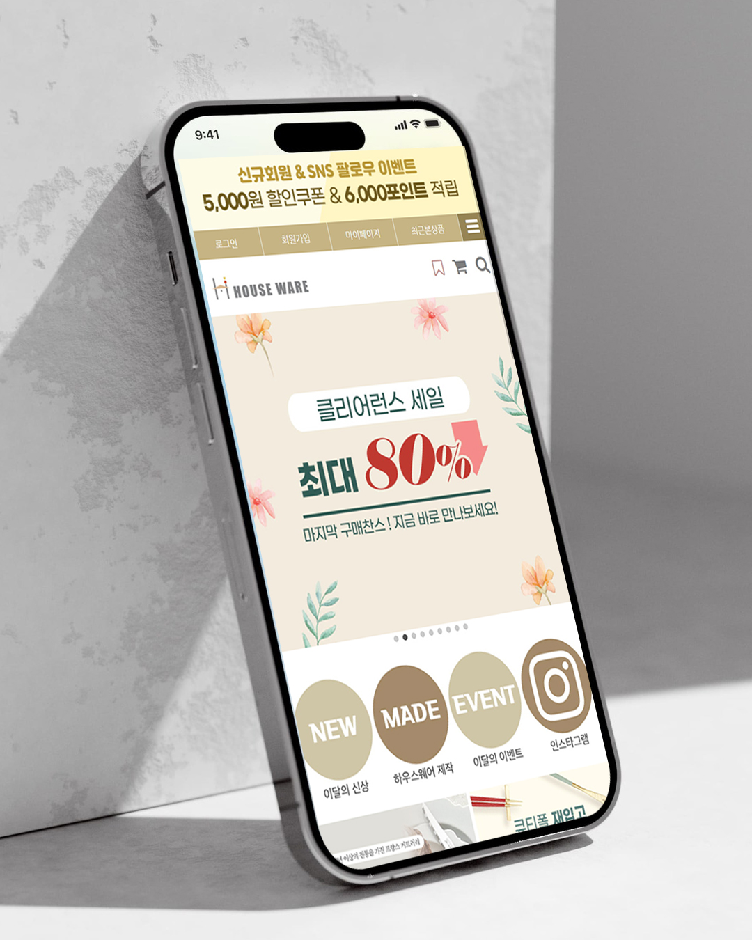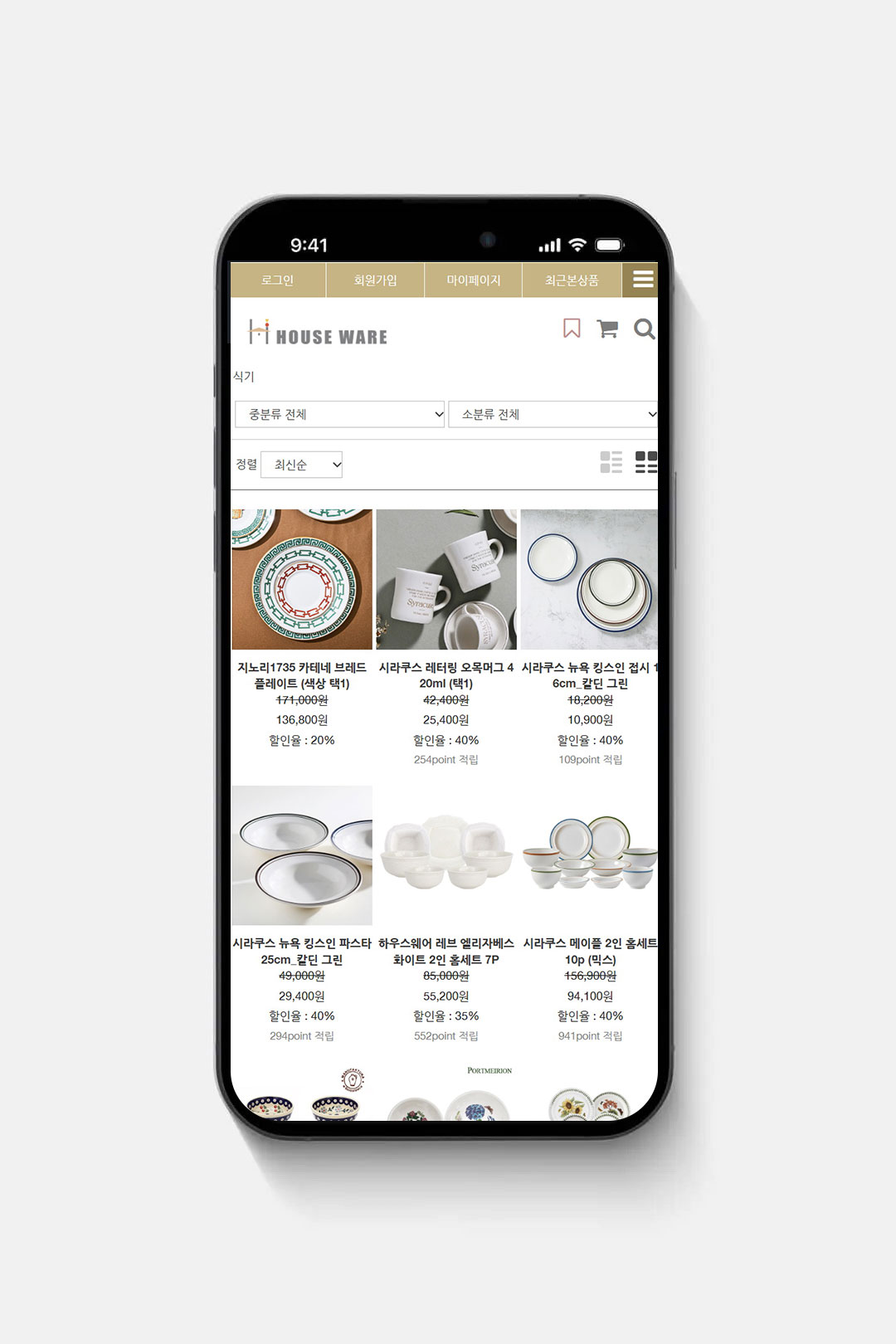 유럽명품식기 전문 온라인 쇼핑몰로 시작한 하우스우웨어입니다. 현재는 리빙/가전/가구/유아동/캠핑등의 버티컬 커머스로 확장중인 온라인 커머스 브랜드로서 초기에 플랫폼 제작과 브랜딩 컨설팅을 주도하였습니다.